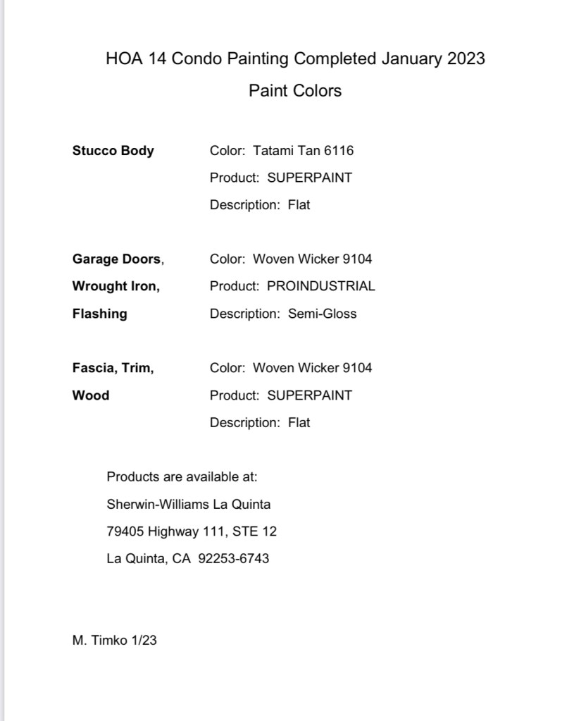 INDIAN PALMS COUNTRY CLUB – HOA 14